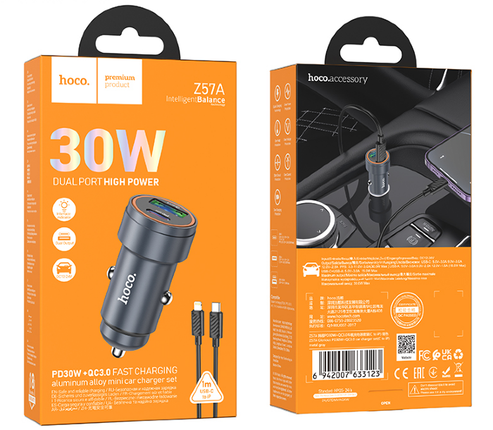 АЗУ HOCO Z57A Glorious PD30W+QC3.0 car charger set(C to C)